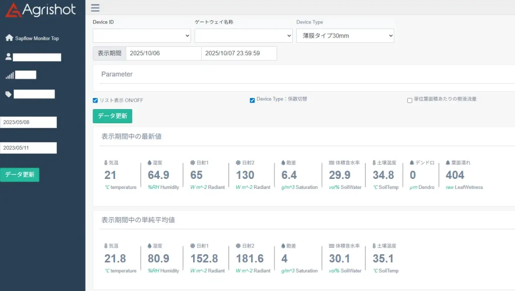 Webアプリケーション「Sapflow Monitor」